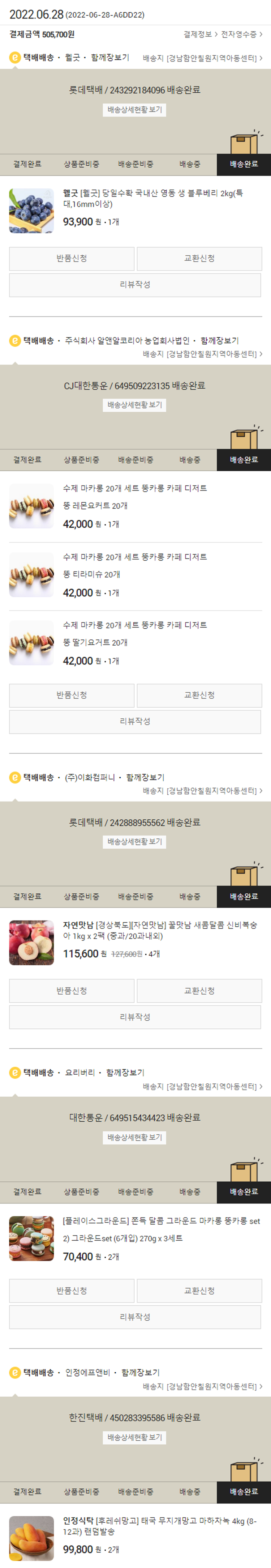 기부자님이 사용한 기부포인트 144,200원, 가격상승분 10,000원, 결제 수수료 8,798원, 기타 사업비는 행복나눔재단이 부담했습니다. (기부후기 발송시점에 최종 업데이트 됩니다.) 실제 쇼핑몰에서 확인되는 배송현황을 캡처한 내용입니다. 실시간 자료와는 차이가 있을 수 있습니다.