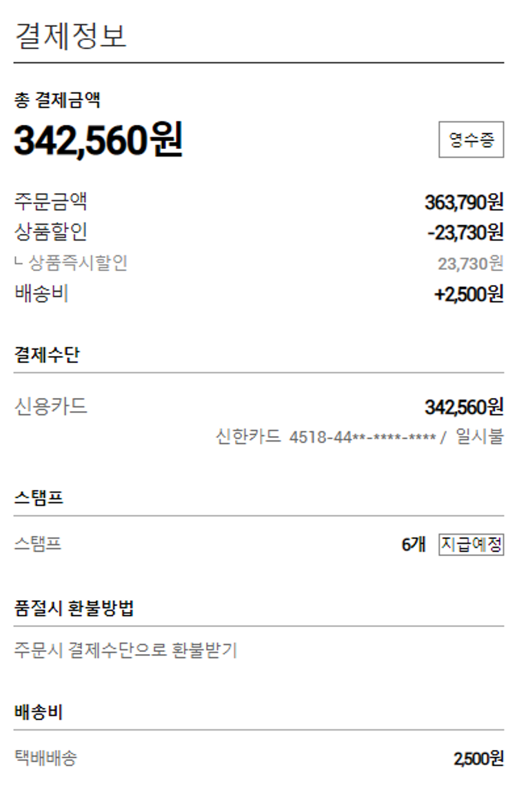 기부자님이 사용한 기부포인트 2,000원, 물품배송비 2,500원, 가격상승분 100원, 100원 미만 지원금 60원, 결제 수수료 12,151원, 기타 사업비는 행복나눔재단이 부담했습니다. (기부후기 발송시점에 최종 업데이트 됩니다.) 실제 쇼핑몰에서 확인되는 배송현황을 캡처한 내용입니다. 실시간 자료와는 차이가 있을 수 있습니다.