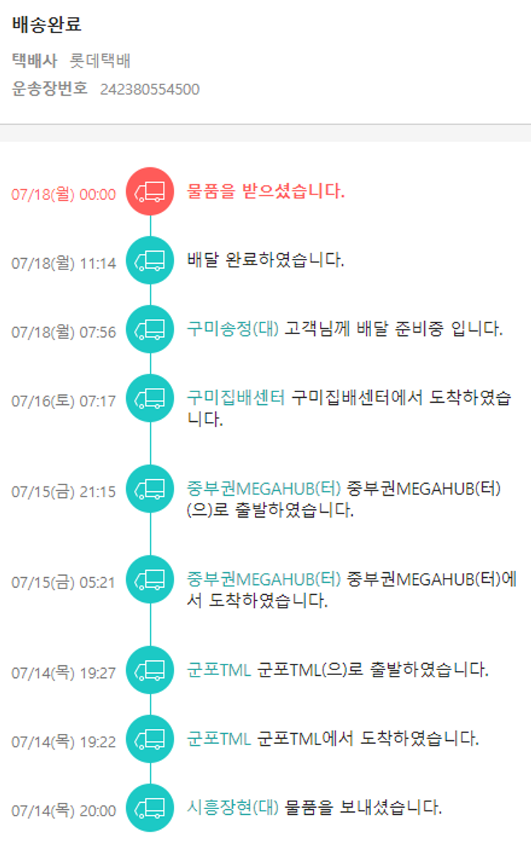 물품배송비 21,800원, 100원 미만 지원금 37원, 기타 사업비는 행복나눔재단이 부담했습니다. (기부후기 발송시점에 최종 업데이트 됩니다.) 실제 쇼핑몰에서 확인되는 배송현황을 캡처한 내용입니다. 실시간 자료와는 차이가 있을 수 있습니다.