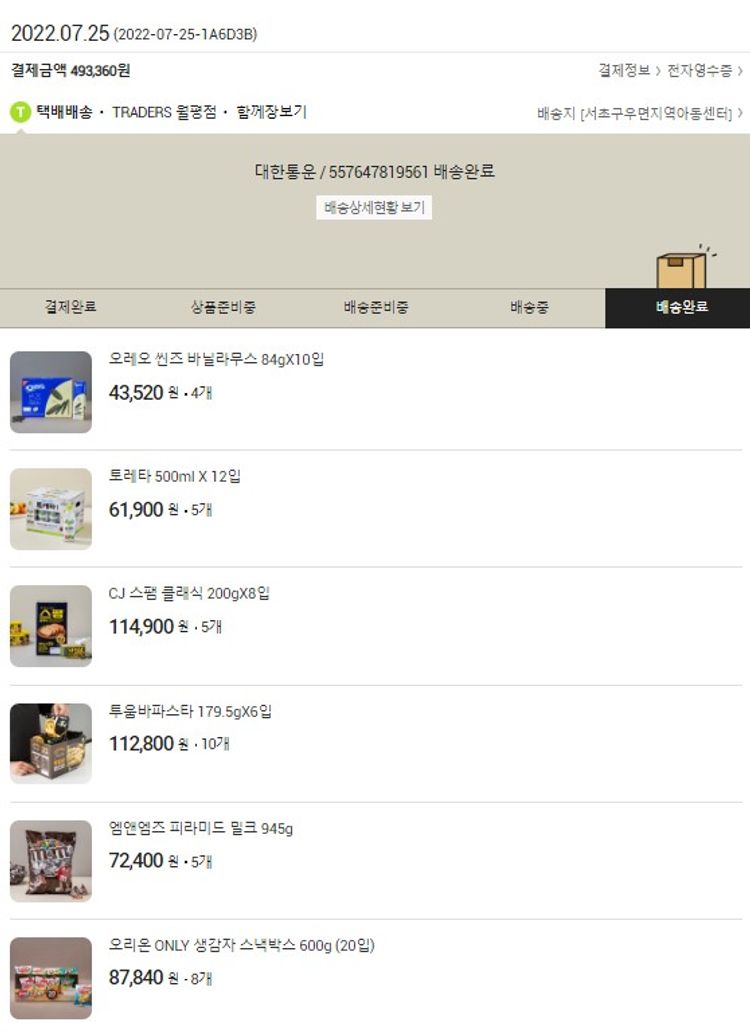 가격상승분 4,000원, 100원 미만 지원금 60원, 결제 수수료 17,223원, 기타 사업비는 행복나눔재단이 부담했습니다. (기부후기 발송시점에 최종 업데이트 됩니다.) 실제 쇼핑몰에서 확인되는 배송현황을 캡처한 내용입니다. 실시간 자료와는 차이가 있을 수 있습니다.