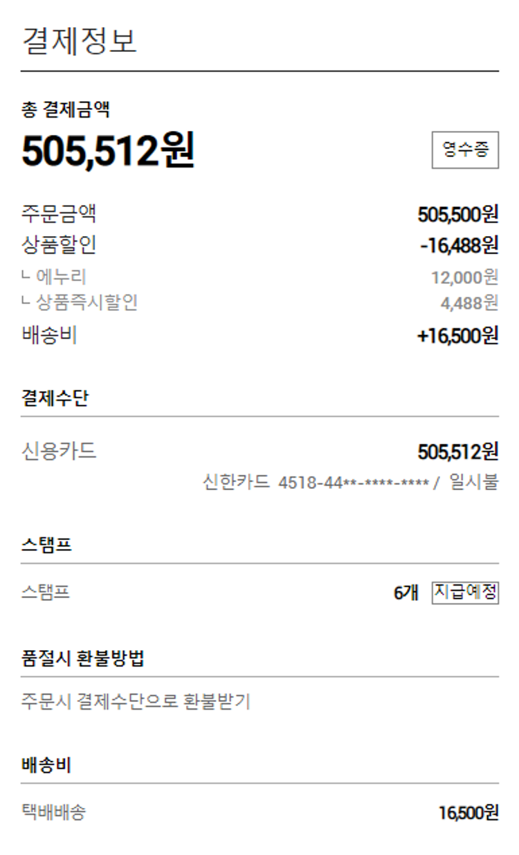 기부자님이 사용한 기부포인트 50,500원, 물품배송비 16,500원, 가격상승분 8,000원, 100원 미만 지원금 12원, 결제 수수료 10,894원, 기타 사업비는 행복나눔재단이 부담했습니다. (기부후기 발송시점에 최종 업데이트 됩니다.) 실제 쇼핑몰에서 확인되는 배송현황을 캡처한 내용입니다. 실시간 자료와는 차이가 있을 수 있습니다.