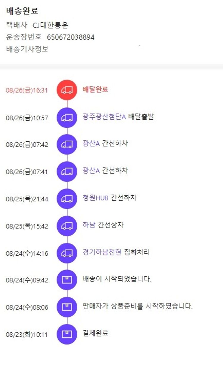 기부자님이 사용한 기부포인트 4,000원, 100원 미만 지원금 40원, 결제 수수료 9,885원, 기타 사업비는 행복나눔재단이 부담했습니다. (기부후기 발송시점에 최종 업데이트 됩니다.) 실제 쇼핑몰에서 확인되는 배송현황을 캡처한 내용입니다. 실시간 자료와는 차이가 있을 수 있습니다.