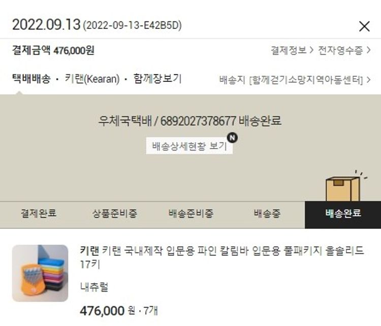 기부자님이 사용한 기부포인트 18,500원, 결제 수수료 13,672원, 기타 사업비는 행복나눔재단이 부담했습니다. (기부후기 발송시점에 최종 업데이트 됩니다.) 실제 쇼핑몰에서 확인되는 배송현황을 캡처한 내용입니다. 실시간 자료와는 차이가 있을 수 있습니다.