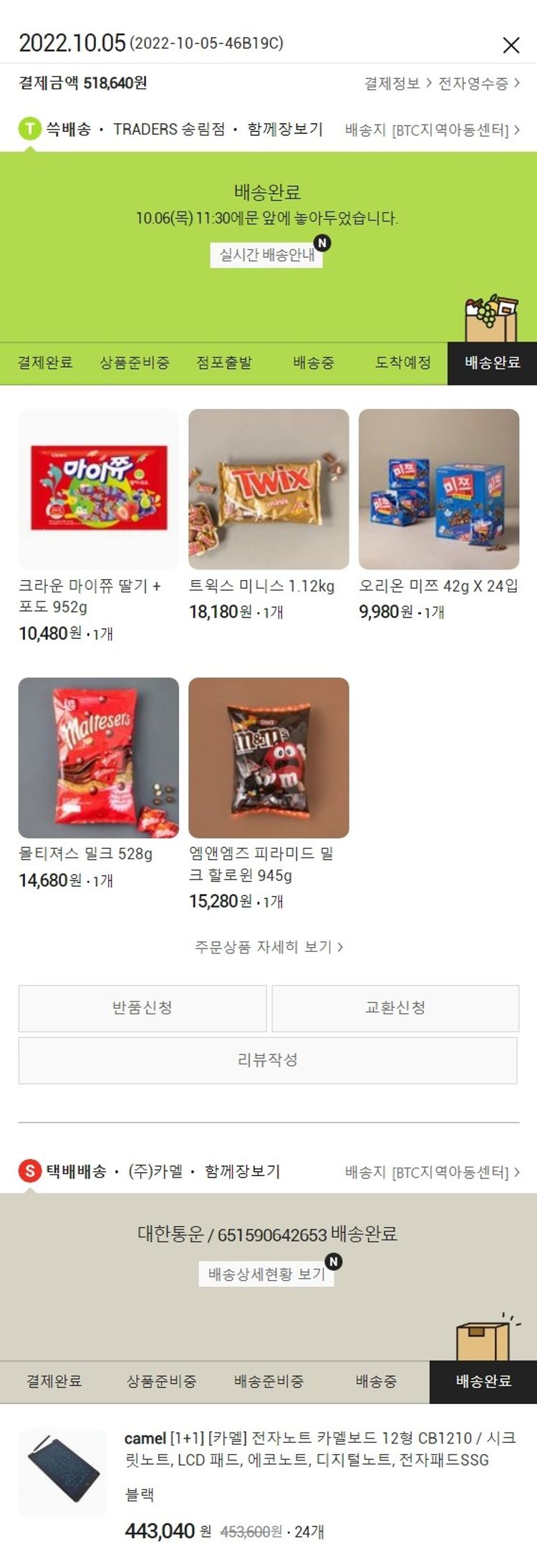 기부자님이 사용한 기부포인트 40,900원, 물품배송비 7,000원, 가격상승분 21,920원, 100원 미만 지원금 20원, 결제 수수료 10,742원, 기타 사업비는 행복나눔재단이 부담했습니다. (기부후기 발송시점에 최종 업데이트 됩니다.) 실제 쇼핑몰에서 확인되는 배송현황을 캡처한 내용입니다. 실시간 자료와는 차이가 있을 수 있습니다.