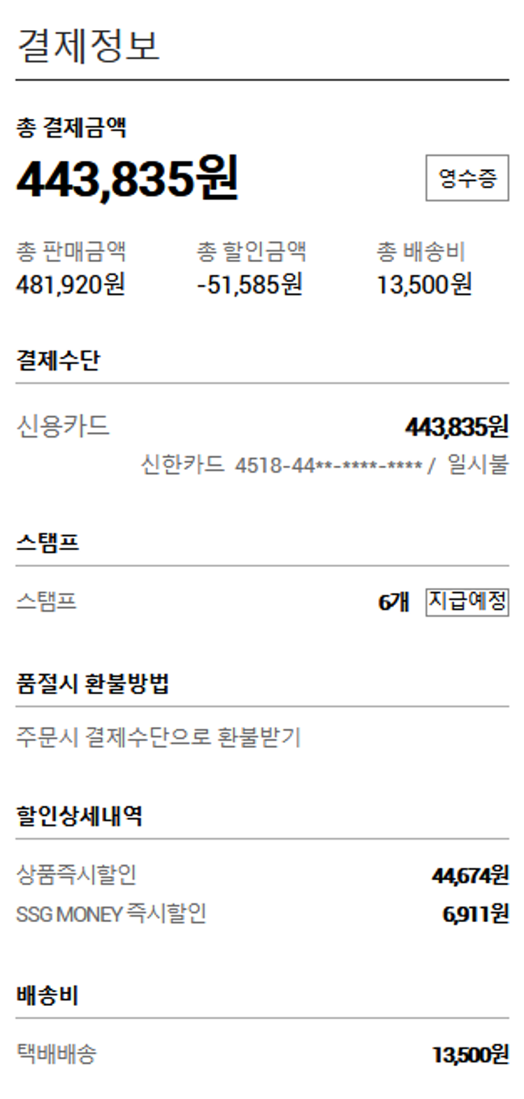 기부자님이 사용한 기부포인트 89,150원, 물품배송비 13,500원, 가격상승분 27원, 100원 미만 지원금 8원, 결제 수수료 8,955원, 기타 사업비는 행복나눔재단이 부담했습니다. (기부후기 발송시점에 최종 업데이트 됩니다.) 실제 쇼핑몰에서 확인되는 배송현황을 캡처한 내용입니다. 실시간 자료와는 차이가 있을 수 있습니다.