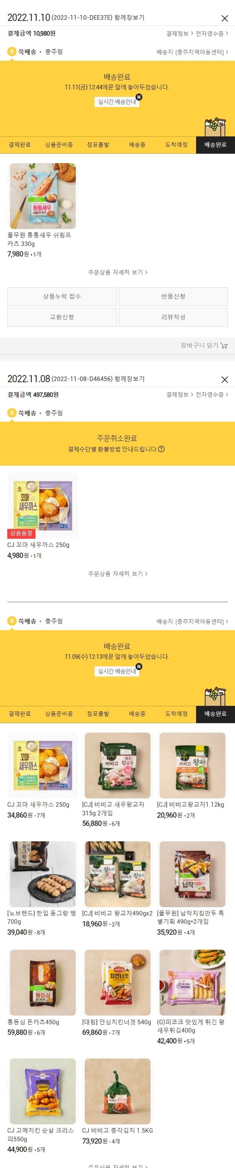 물품배송비 3,000원, 가격상승분 6,440원, 100원 미만 지원금 20원, 결제 수수료 11,345원, 기타 사업비는 행복나눔재단이 부담했습니다. (기부후기 발송시점에 최종 업데이트 됩니다.) 주문 상품 중 품절 상품이 발생하여 2022.11.10. 재주문하였습니다. 실제 쇼핑몰에서 확인되는 배송현황을 캡처한 내용입니다. 실시간 자료와는 차이가 있을 수 있습니다.