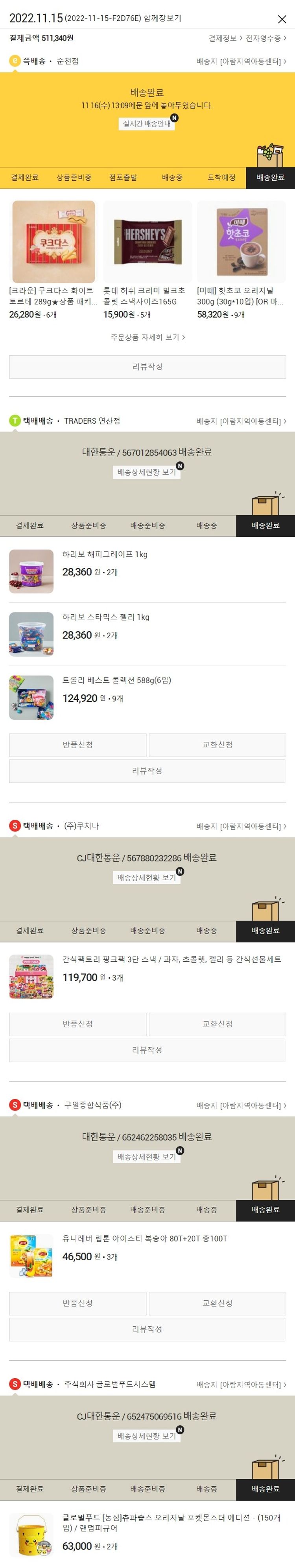 기부자님이 사용한 기부포인트 10,500원, 가격상승분 11,760원, 100원 미만 지원금 80원, 결제 수수료 13,991원, 기타 사업비는 행복나눔재단이 부담했습니다. (기부후기 발송시점에 최종 업데이트 됩니다.) 실제 쇼핑몰에서 확인되는 배송현황을 캡처한 내용입니다. 실시간 자료와는 차이가 있을 수 있습니다.
