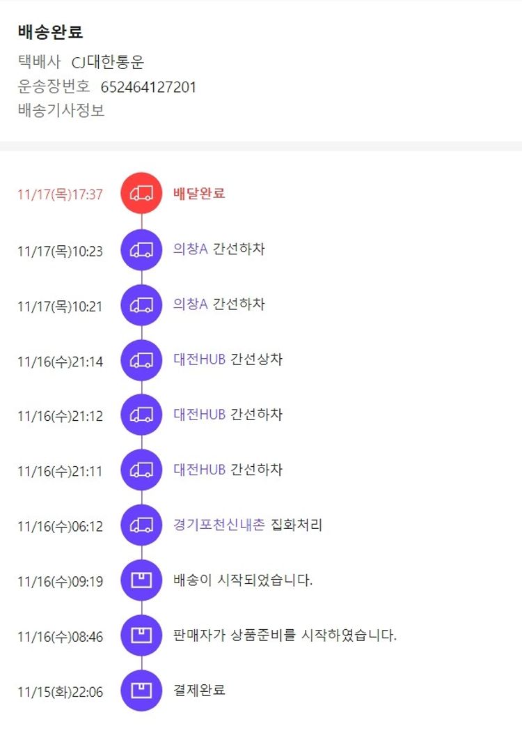 기부자님이 사용한 기부포인트 47,300원, 가격상승분 34,515원, 결제 수수료 15,812원, 기타 사업비는 행복나눔재단이 부담했습니다. (기부후기 발송시점에 최종 업데이트 됩니다.) 실제 쇼핑몰에서 확인되는 배송현황을 캡처한 내용입니다. 실시간 자료와는 차이가 있을 수 있습니다.
