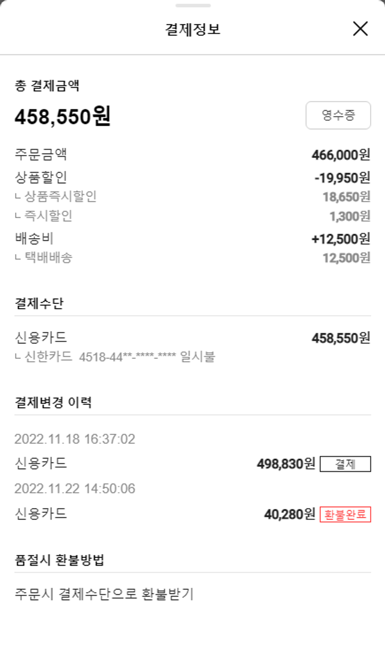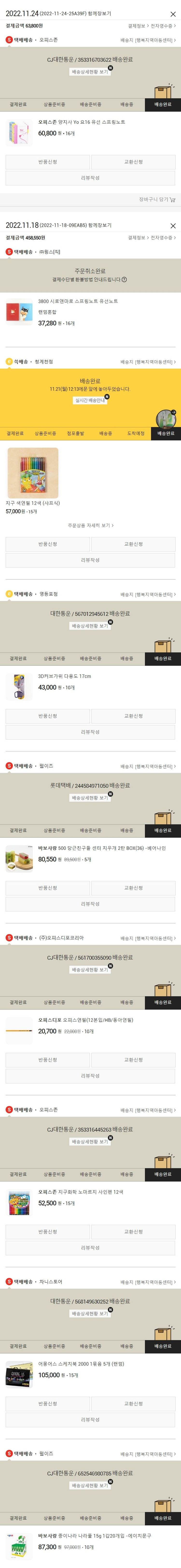 기부자님이 사용한 기부포인트 72,450원, 물품배송비 15,500원, 가격상승분 24,420원, 100원 미만 지원금 30원, 결제 수수료 10,146원, 기타 사업비는 행복나눔재단이 부담했습니다. (기부후기 발송시점에 최종 업데이트 됩니다.) 주문완료한 상품 중 품절건이 발생하여 2022-11-24 재주문하였습니다. 실제 쇼핑몰에서 확인되는 배송현황을 캡처한 내용입니다. 실시간 자료와는 차이가 있을 수 있습니다.