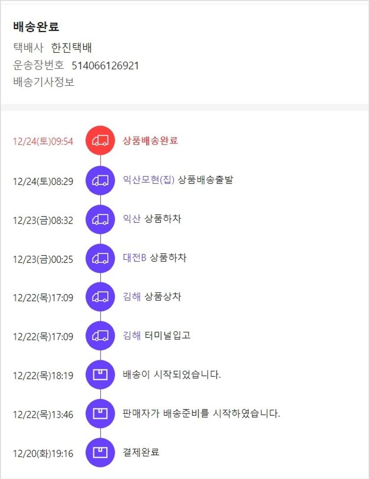 가격상승분 30,450원, 기타 사업비는 행복나눔재단이 부담했습니다. (기부후기 발송시점에 최종 업데이트 됩니다.) 실제 쇼핑몰에서 확인되는 배송현황을 캡처한 내용입니다. 실시간 자료와는 차이가 있을 수 있습니다.