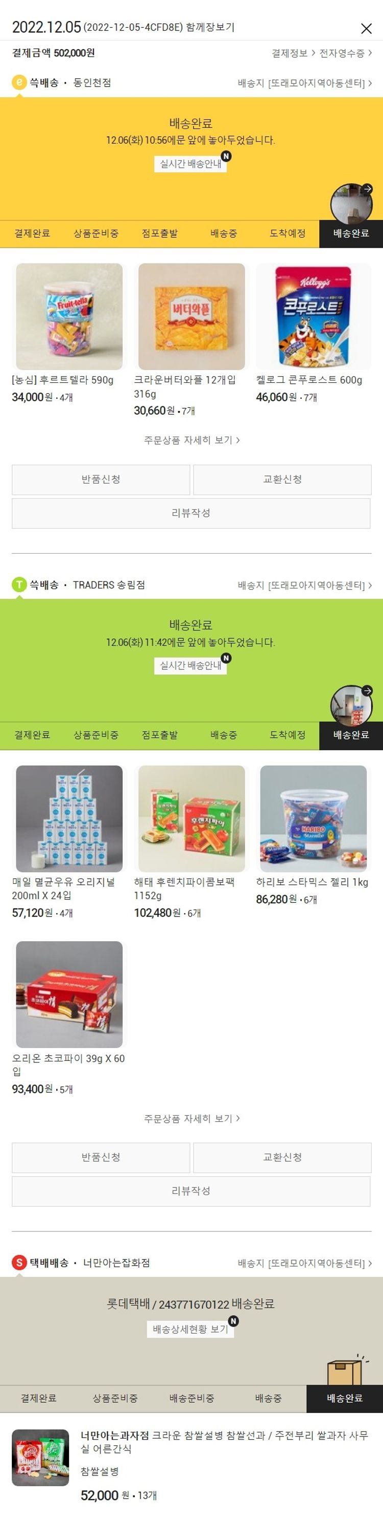 기부자님이 사용한 기부포인트 27,900원, 가격상승분 5,800원, 결제 수수료 12,640원, 기타 사업비는 행복나눔재단이 부담했습니다. (기부후기 발송시점에 최종 업데이트 됩니다.) 실제 쇼핑몰에서 확인되는 배송현황을 캡처한 내용입니다. 실시간 자료와는 차이가 있을 수 있습니다.