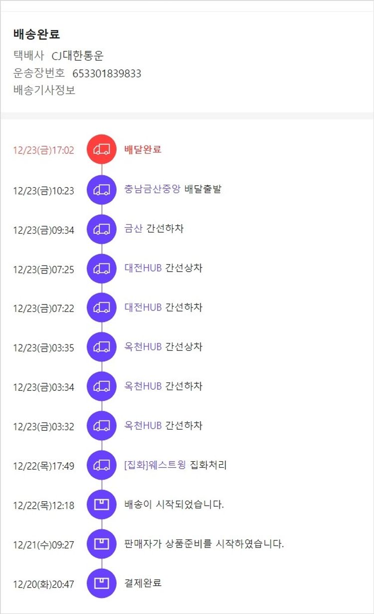 가격상승분 472원, 결제 수수료 20,037원, 기타 사업비는 행복나눔재단이 부담했습니다. (기부후기 발송시점에 최종 업데이트 됩니다.) 실제 쇼핑몰에서 확인되는 배송현황을 캡처한 내용입니다. 실시간 자료와는 차이가 있을 수 있습니다.