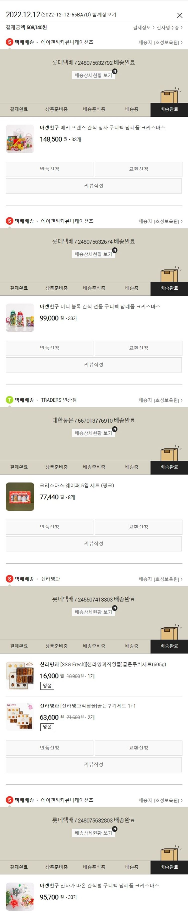 물품배송비 7,000원, 가격상승분 1,140원, 결제 수수료 9,350원, 기타 사업비는 행복나눔재단이 부담했습니다. (기부후기 발송시점에 최종 업데이트 됩니다.) 실제 쇼핑몰에서 확인되는 배송현황을 캡처한 내용입니다. 실시간 자료와는 차이가 있을 수 있습니다.