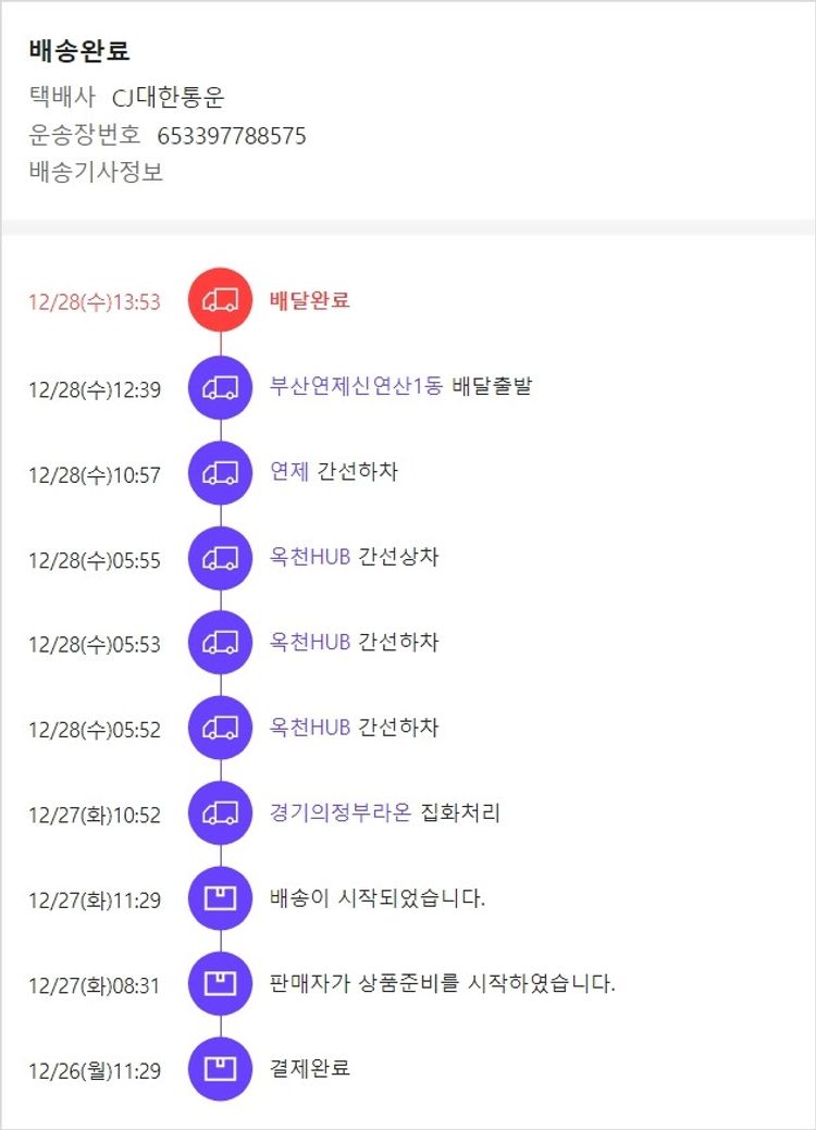 기부자님이 사용한 기부포인트 23,700원, 가격상승분 10,102원, 100원 미만 지원금 98원, 결제 수수료 14,674원, 기타 사업비는 행복나눔재단이 부담했습니다. (기부후기 발송시점에 최종 업데이트 됩니다.) 실제 쇼핑몰에서 확인되는 배송현황을 캡처한 내용입니다. 실시간 자료와는 차이가 있을 수 있습니다.