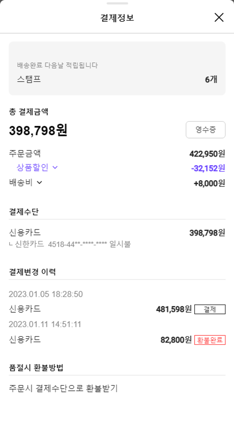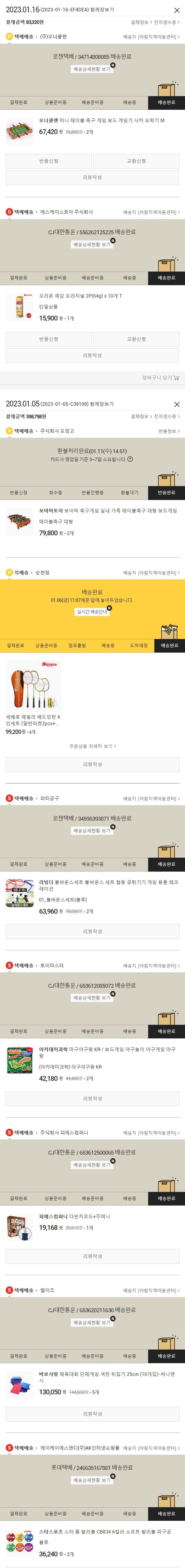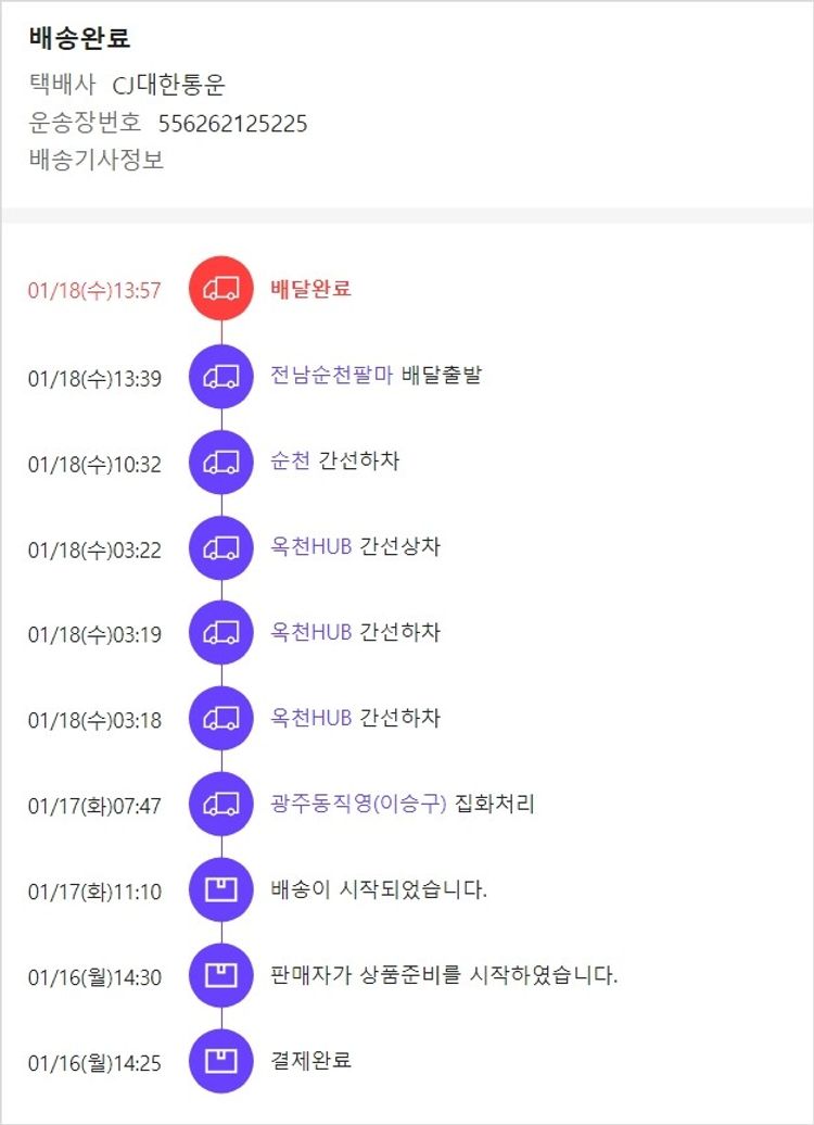 기부자님이 사용한 기부포인트 500원, 물품배송비 8,000원, 가격상승분 3,520원, 100원 미만 지원금 98원, 결제 수수료 10,357원, 기타 사업비는 행복나눔재단이 부담했습니다. (기부후기 발송시점에 최종 업데이트 됩니다.) 주문 후 품절건이 발생하여 2023.01.16. 유사 및 대체상품으로 재주문하였습니다. 실제 쇼핑몰에서 확인되는 배송현황을 캡처한 내용입니다. 실시간 자료와는 차이가 있을 수 있습니다.