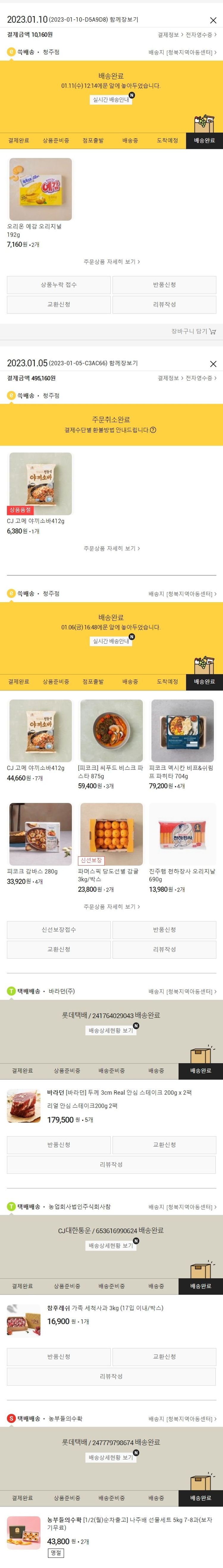기부자님이 사용한 기부포인트 20,500원, 물품배송비 3,000원, 가격상승분 2,600원, 100원 미만 지원금 20원, 결제 수수료 10,905원, 기타 사업비는 행복나눔재단이 부담했습니다. (기부후기 발송시점에 최종 업데이트 됩니다.) 품절건이 발생하여 2023.1.10. 재주문하였습니다. 실제 쇼핑몰에서 확인되는 배송현황을 캡처한 내용입니다. 실시간 자료와는 차이가 있을 수 있습니다.