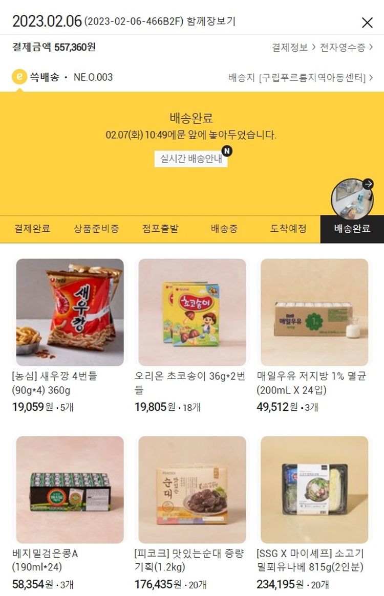 가격상승분 57,360원, 결제 수수료 9,350원, 기타 사업비는 행복나눔재단이 부담했습니다. (기부후기 발송시점에 최종 업데이트 됩니다.) 실제 쇼핑몰에서 확인되는 배송현황을 캡처한 내용입니다. 실시간 자료와는 차이가 있을 수 있습니다.