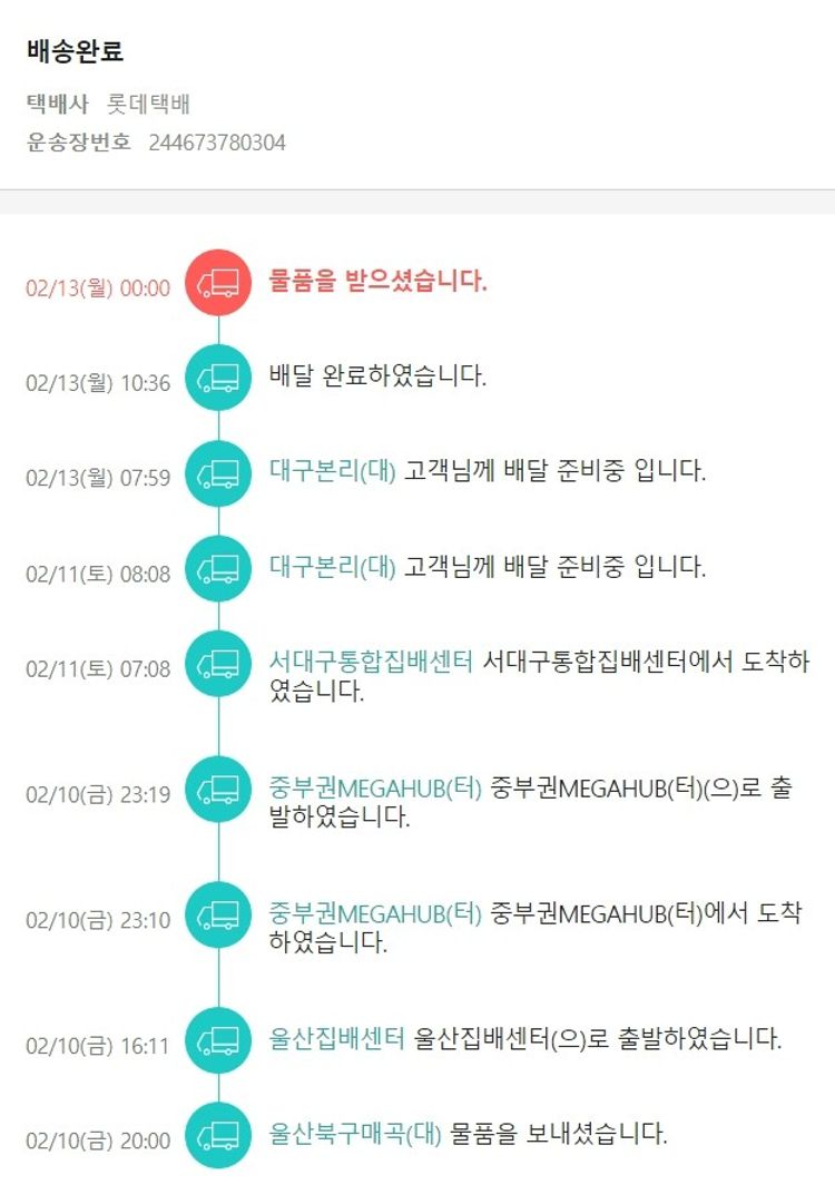 가격상승분 2,590원, 100원 미만 지원금 10원, 결제 수수료 19,670원, 기타 사업비는 행복나눔재단이 부담했습니다. (기부후기 발송시점에 최종 업데이트 됩니다.) 실제 쇼핑몰에서 확인되는 배송현황을 캡처한 내용입니다. 실시간 자료와는 차이가 있을 수 있습니다.
