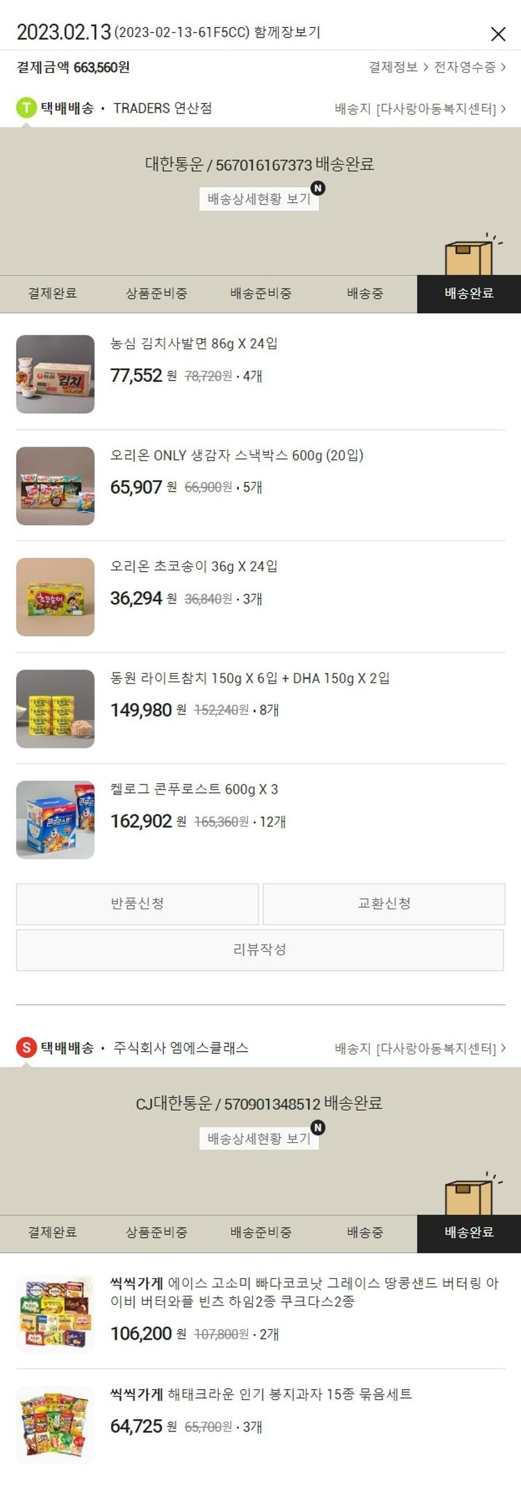 기부자님이 사용한 기부포인트 13,600원, 가격상승분 1,920원, 100원 미만 지원금 40원, 결제 수수료 14,492원, 기타 사업비는 행복나눔재단이 부담했습니다. (기부후기 발송시점에 최종 업데이트 됩니다.) 실제 쇼핑몰에서 확인되는 배송현황을 캡처한 내용입니다. 실시간 자료와는 차이가 있을 수 있습니다.