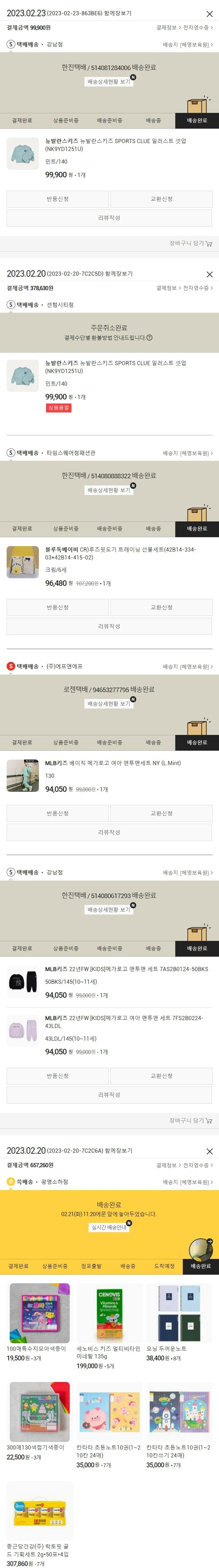 기부자님이 사용한 기부포인트 49,000원, 가격상승분 21,400원, 100원 미만 지원금 90원, 결제 수수료 28,449원, 기타 사업비는 행복나눔재단이 부담했습니다. (기부후기 발송시점에 최종 업데이트 됩니다.) 주문 건 중 품절이 발생하여 23.02.23. 재주문 하였습니다. 실제 쇼핑몰에서 확인되는 배송현황을 캡처한 내용입니다. 실시간 자료와는 차이가 있을 수 있습니다.