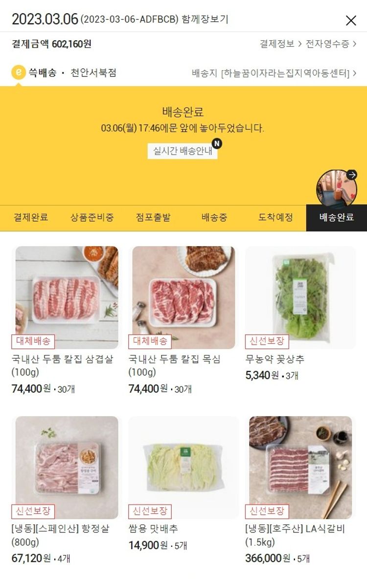 가격상승분 2,940원, 100원 미만 지원금 20원, 결제 수수료 11,204원, 기타 사업비는 행복나눔재단이 부담했습니다. (기부후기 발송시점에 최종 업데이트 됩니다.) 실제 쇼핑몰에서 확인되는 배송현황을 캡처한 내용입니다. 실시간 자료와는 차이가 있을 수 있습니다.
