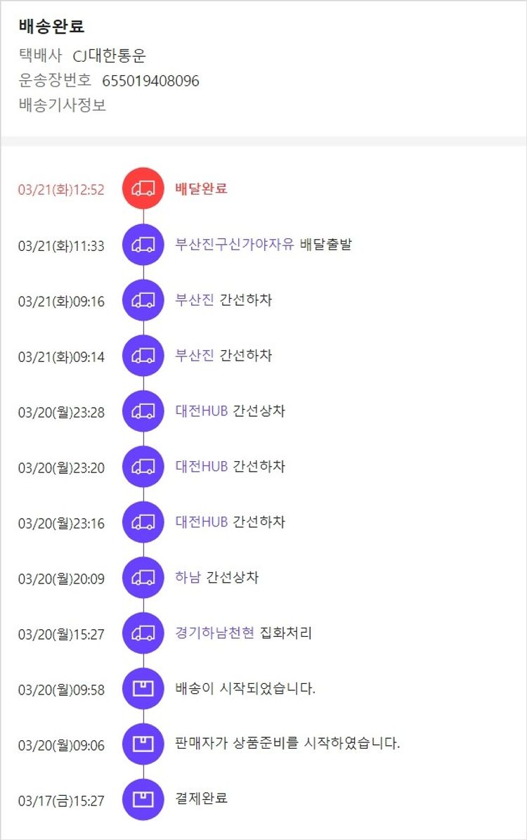 기부자님이 사용한 기부포인트 16,600원, 가격상승분 331원, 100원 미만 지원금 97원, 결제 수수료 15,662원, 기타 사업비는 행복나눔재단이 부담했습니다. (기부후기 발송시점에 최종 업데이트 됩니다.) 실제 쇼핑몰에서 확인되는 배송현황을 캡처한 내용입니다. 실시간 자료와는 차이가 있을 수 있습니다.