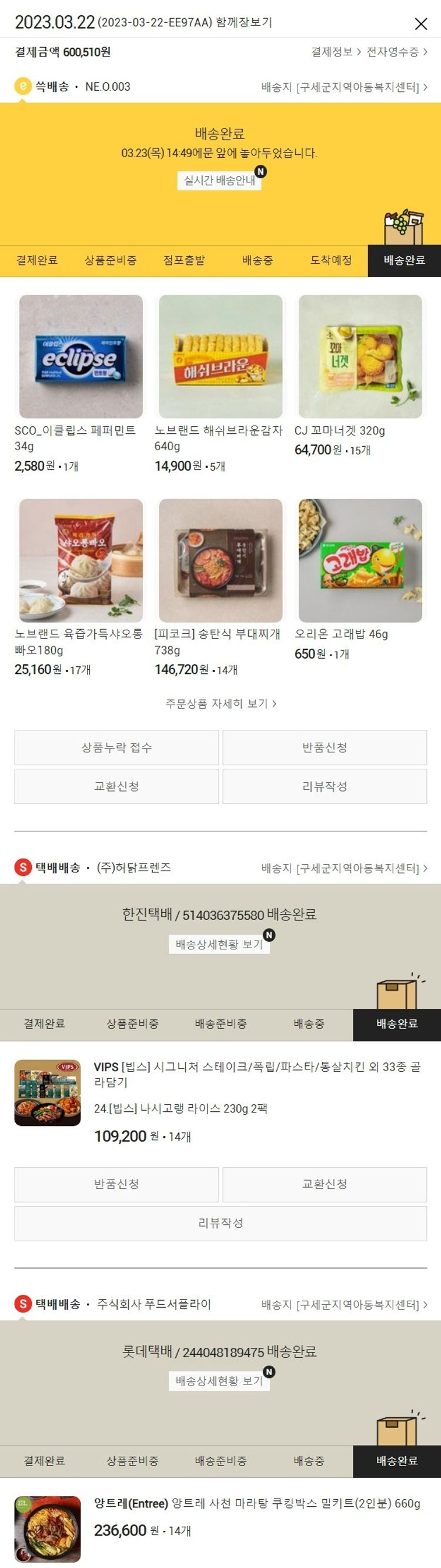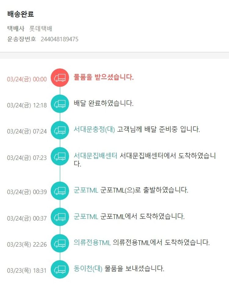 기부자님이 사용한 기부포인트 20,600원, 가격상승분 620원, 100원 미만 지원금 90원, 결제 수수료 12,508원, 기타 사업비는 행복나눔재단이 부담했습니다. (기부후기 발송시점에 최종 업데이트 됩니다.) 실제 쇼핑몰에서 확인되는 배송현황을 캡처한 내용입니다. 실시간 자료와는 차이가 있을 수 있습니다.