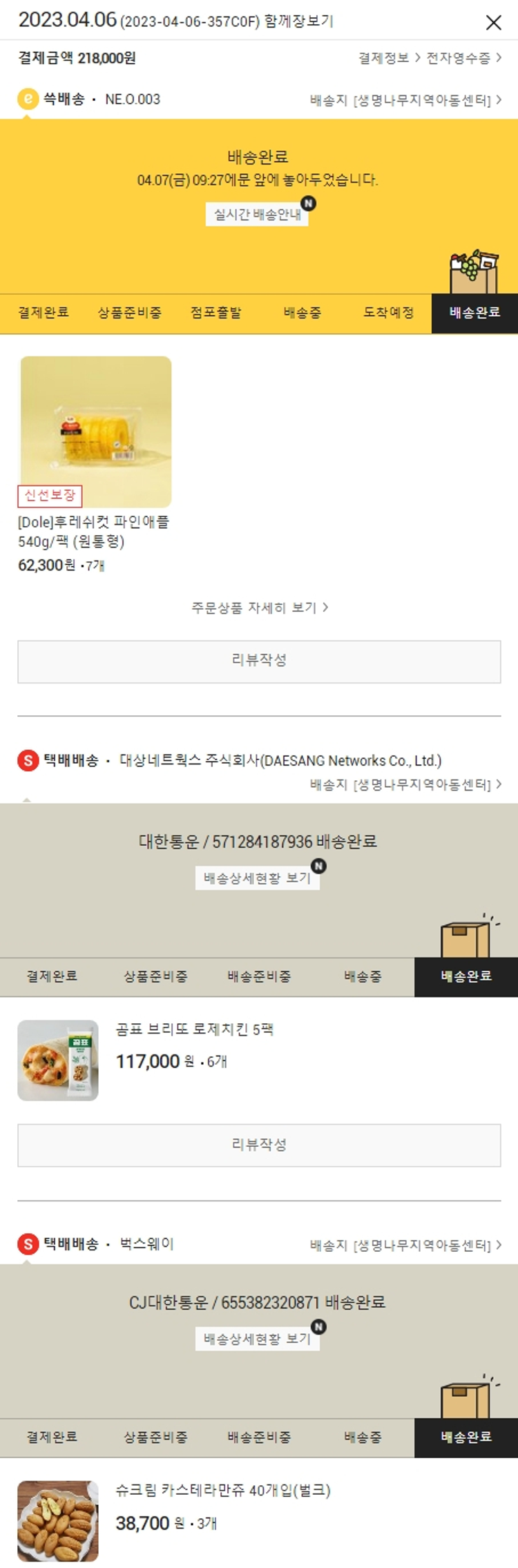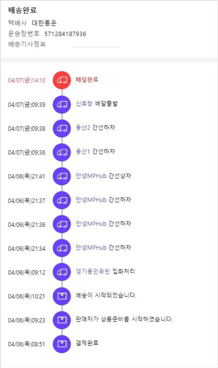 기부자님이 사용한 기부포인트 4,050원, 가격상승분 840원, 100원 미만 지원금 60원, 결제 수수료 11,597원, 기타 사업비는 행복나눔재단이 부담했습니다. (기부후기 발송시점에 최종 업데이트 됩니다.) 실제 쇼핑몰에서 확인되는 배송현황을 캡처한 내용입니다. 실시간 자료와는 차이가 있을 수 있습니다.