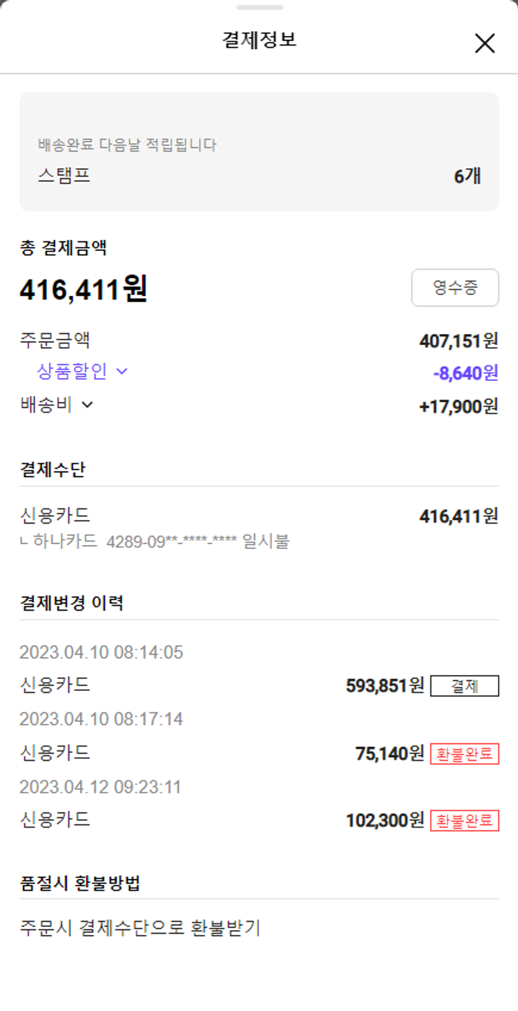 주문 건 중 품절 건 발생하여 2023. 04. 17. 재주문하였습니다.