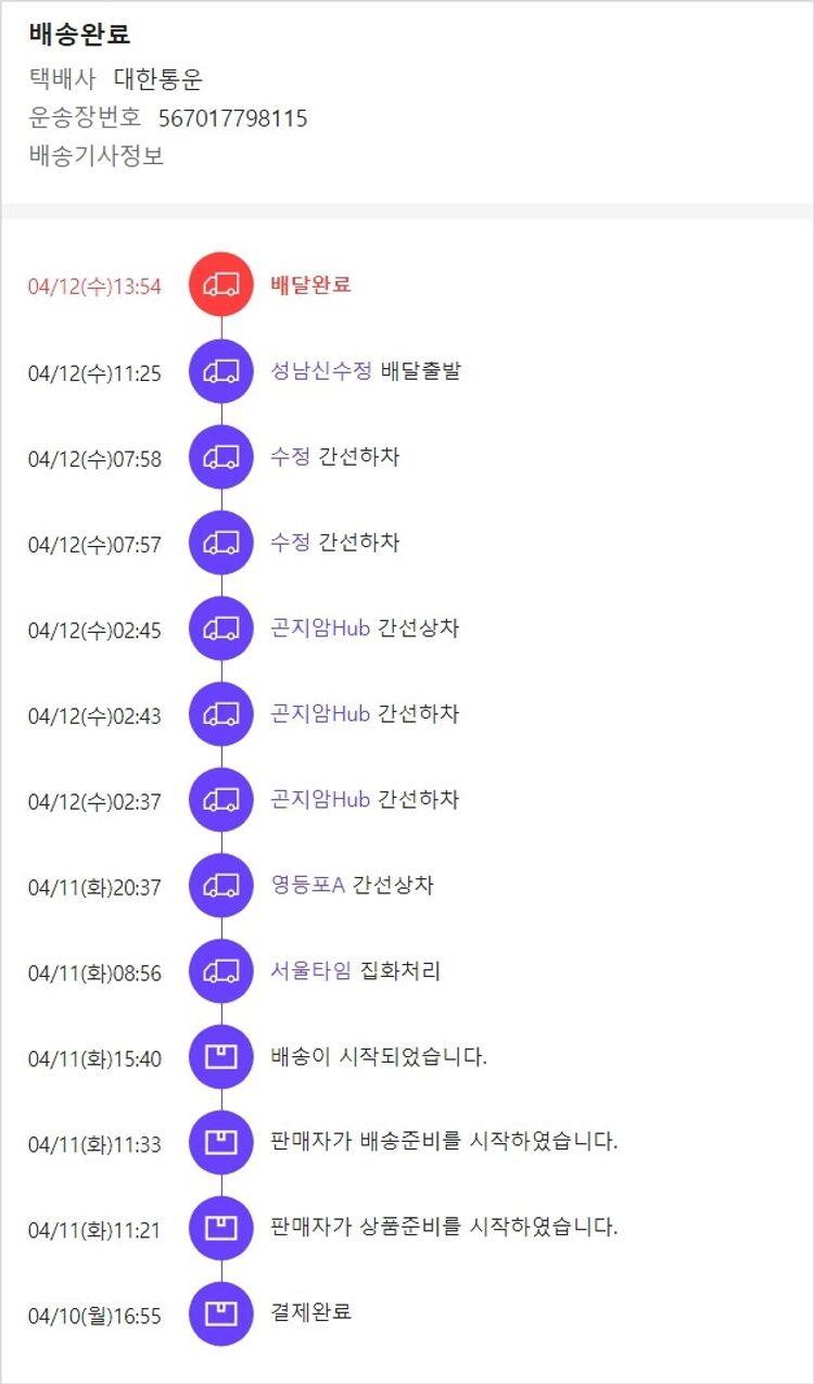 기부자님이 사용한 기부포인트 8,000원, 가격상승분 384원, 100원 미만 지원금 20원, 결제 수수료 11,042원, 기타 사업비는 행복나눔재단이 부담했습니다. (기부후기 발송시점에 최종 업데이트 됩니다.) 실제 쇼핑몰에서 확인되는 배송현황을 캡처한 내용입니다. 실시간 자료와는 차이가 있을 수 있습니다.