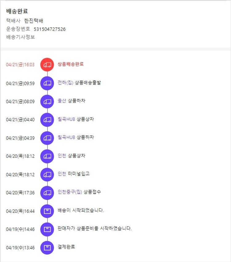 기부자님이 사용한 기부포인트 3,000원, 물품배송비 5,900원, 가격상승분 450원, 100원 미만 지원금 10원, 결제 수수료 20,059원, 기타 사업비는 행복나눔재단이 부담했습니다. (기부후기 발송시점에 최종 업데이트 됩니다.) 주문 건 중 품절 건 발생하여 2023. 04. 19. 재주문하였습니다. 실제 쇼핑몰에서 확인되는 배송현황을 캡처한 내용입니다. 실시간 자료와는 차이가 있을 수 있습니다.