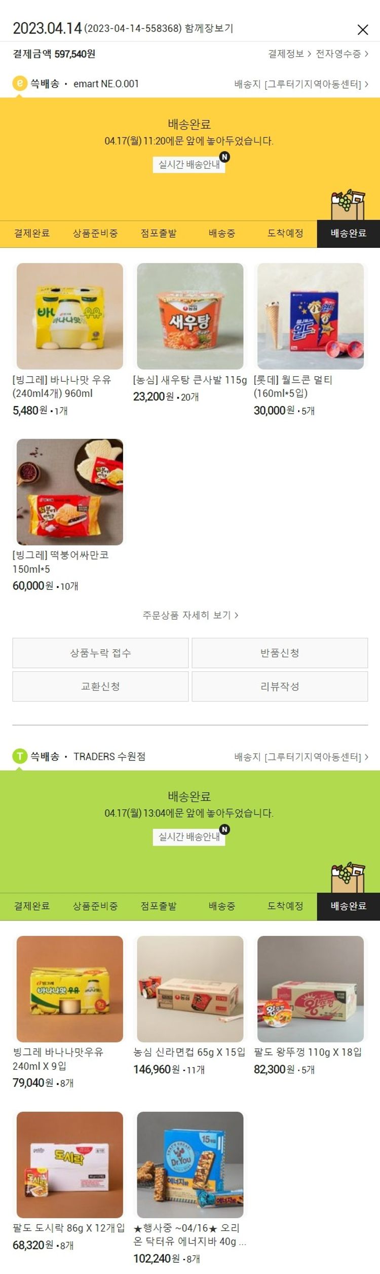 기부자님이 사용한 기부포인트 4,000원, 가격상승분 1,600원, 100원 미만 지원금 40원, 결제 수수료 20,834원, 기타 사업비는 행복나눔재단이 부담했습니다. (기부후기 발송시점에 최종 업데이트 됩니다.) 실제 쇼핑몰에서 확인되는 배송현황을 캡처한 내용입니다. 실시간 자료와는 차이가 있을 수 있습니다.