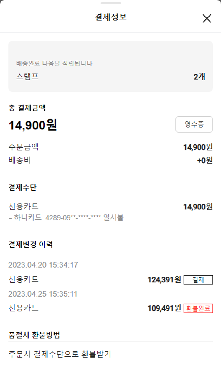 주문 건 중 품절 건 발생하여 2023. 04. 25. 재주문하였습니다.