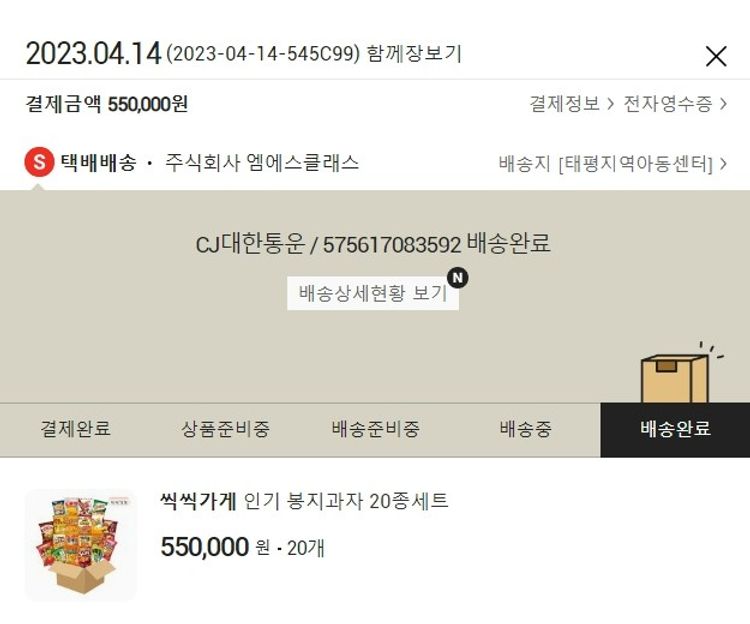 기부자님이 사용한 기부포인트 32,000원, 결제 수수료 14,882원, 기타 사업비는 행복나눔재단이 부담했습니다. (기부후기 발송시점에 최종 업데이트 됩니다.) 실제 쇼핑몰에서 확인되는 배송현황을 캡처한 내용입니다. 실시간 자료와는 차이가 있을 수 있습니다.