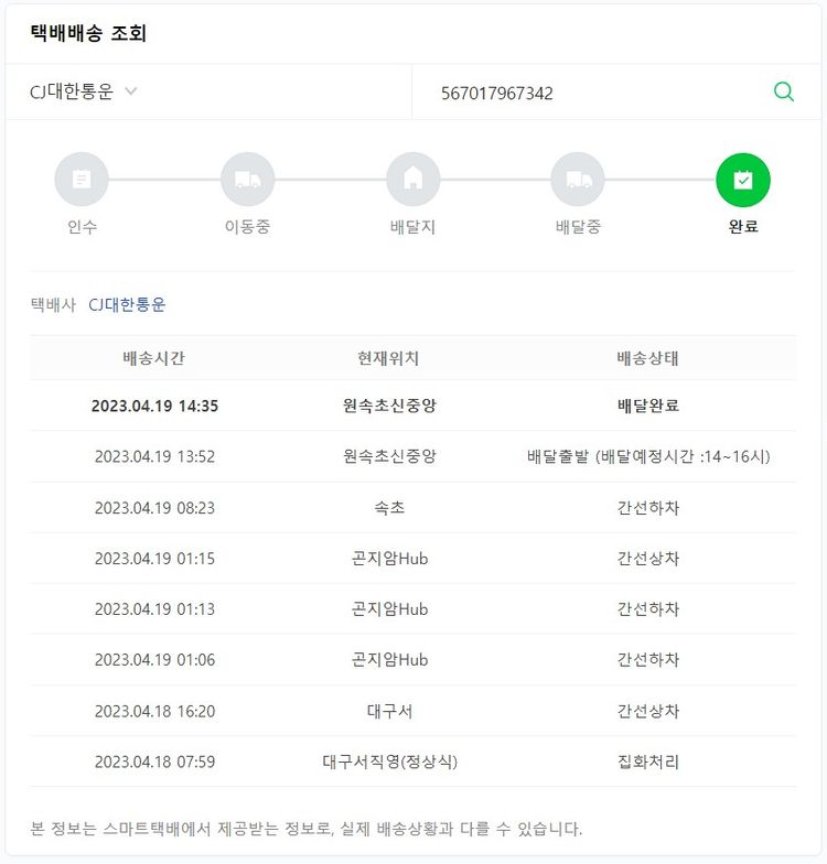 물품배송비 11,400원, 가격상승분 80원, 100원 미만 지원금 61원, 결제 수수료 9,350원, 기타 사업비는 행복나눔재단이 부담했습니다. (기부후기 발송시점에 최종 업데이트 됩니다.) 주문 건 중 품절 건 발생하여 2023. 04. 14. 재주문하였습니다. 실제 쇼핑몰에서 확인되는 배송현황을 캡처한 내용입니다. 실시간 자료와는 차이가 있을 수 있습니다.