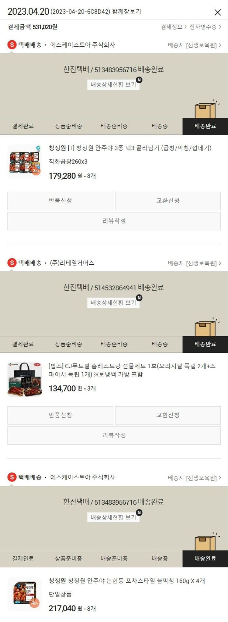 기부자님이 사용한 기부포인트 2,000원, 100원 미만 지원금 20원, 결제 수수료 12,001원, 기타 사업비는 행복나눔재단이 부담했습니다. (기부후기 발송시점에 최종 업데이트 됩니다.) 실제 쇼핑몰에서 확인되는 배송현황을 캡처한 내용입니다. 실시간 자료와는 차이가 있을 수 있습니다.