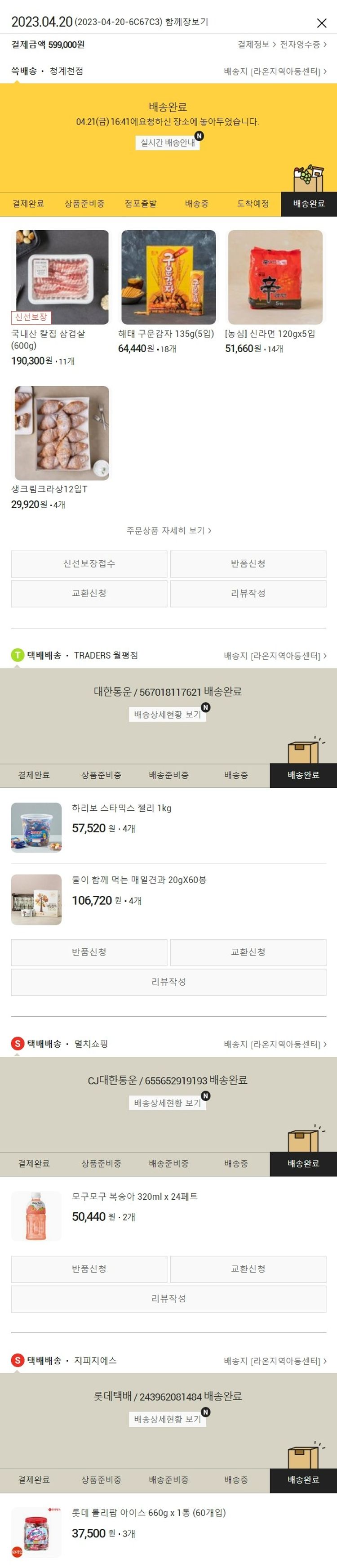 기부자님이 사용한 기부포인트 100원, 물품배송비 10,500원, 가격상승분 80원, 100원 미만 지원금 20원, 결제 수수료 11,050원, 기타 사업비는 행복나눔재단이 부담했습니다. (기부후기 발송시점에 최종 업데이트 됩니다.) 실제 쇼핑몰에서 확인되는 배송현황을 캡처한 내용입니다. 실시간 자료와는 차이가 있을 수 있습니다.