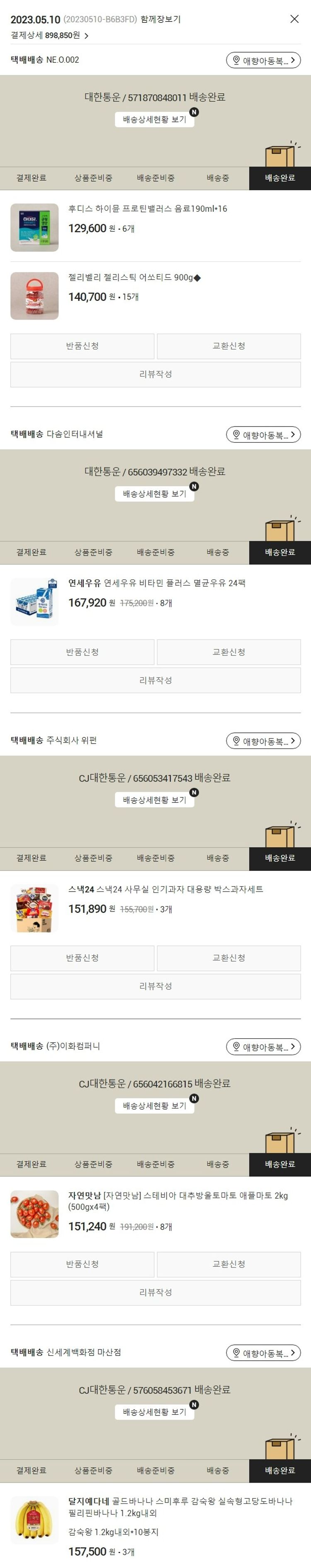 기부자님이 사용한 기부포인트 3,000원, 가격상승분 1,830원, 100원 미만 지원금 20원, 결제 수수료 21,596원, 기타 사업비는 행복나눔재단이 부담했습니다. (기부후기 발송시점에 최종 업데이트 됩니다.) 실제 쇼핑몰에서 확인되는 배송현황을 캡처한 내용입니다. 실시간 자료와는 차이가 있을 수 있습니다.