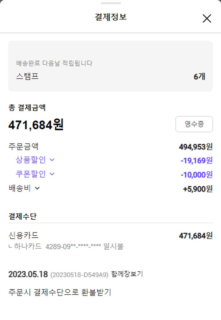기부자님이 사용한 기부포인트 52,500원, 물품배송비 5,900원, 가격상승분 308원, 100원 미만 지원금 66원, 결제 수수료 13,875원, 기타 사업비는 행복나눔재단이 부담했습니다. (기부후기 발송시점에 최종 업데이트 됩니다.) 실제 쇼핑몰에서 확인되는 배송현황을 캡처한 내용입니다. 실시간 자료와는 차이가 있을 수 있습니다.