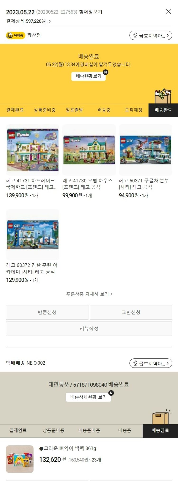 기부자님이 사용한 기부포인트 24,200원, 가격상승분 296원, 100원 미만 지원금 24원, 결제 수수료 16,044원, 기타 사업비는 행복나눔재단이 부담했습니다. (기부후기 발송시점에 최종 업데이트 됩니다.) 실제 쇼핑몰에서 확인되는 배송현황을 캡처한 내용입니다. 실시간 자료와는 차이가 있을 수 있습니다.
