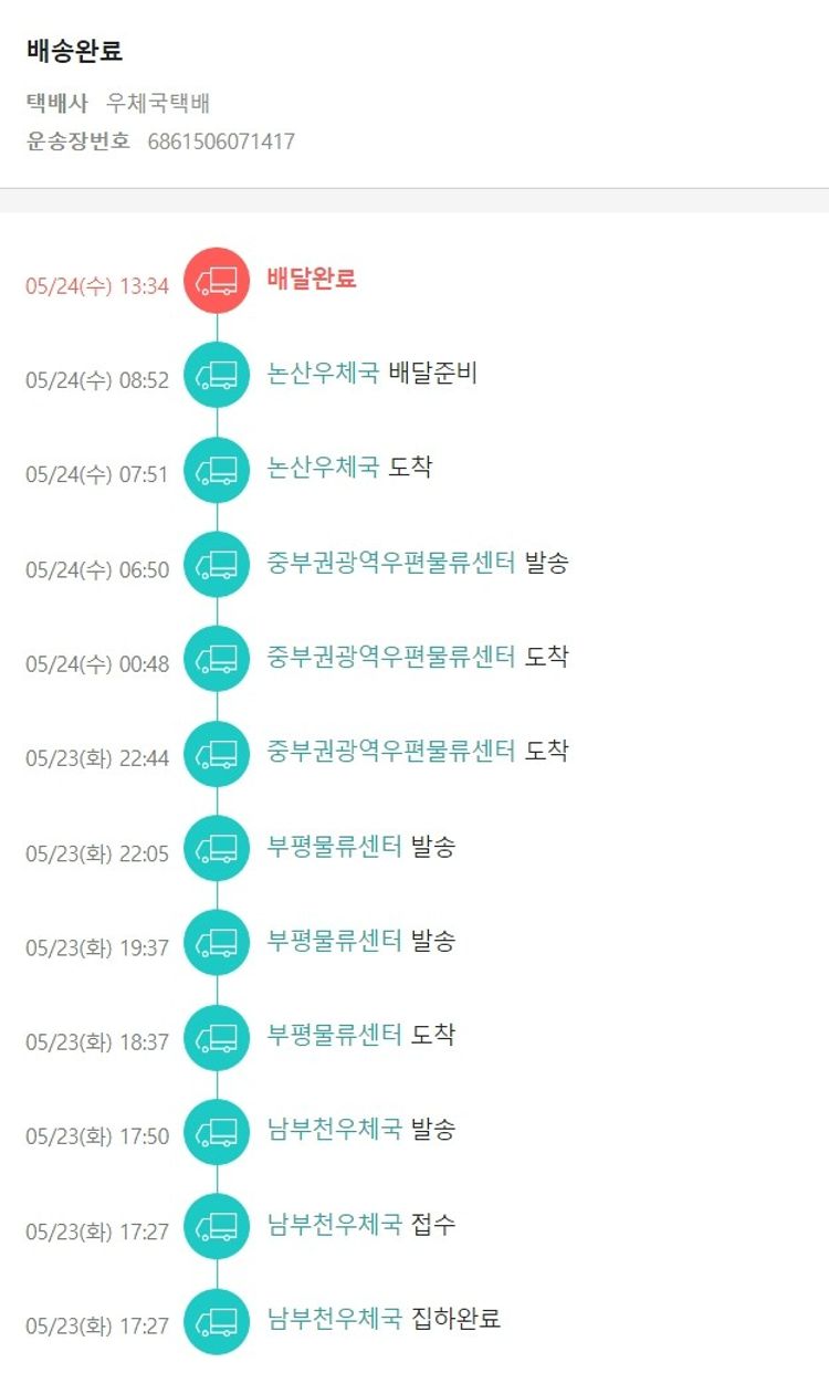 기부자님이 사용한 기부포인트 27,000원, 물품배송비 6,000원, 가격상승분 4,497원, 100원 미만 지원금 25원, 결제 수수료 10,274원, 기타 사업비는 행복나눔재단이 부담했습니다. (기부후기 발송시점에 최종 업데이트 됩니다.) 주문 건 중 품절 건 발생하여 2023. 05. 22. 재주문하였습니다. 실제 쇼핑몰에서 확인되는 배송현황을 캡처한 내용입니다. 실시간 자료와는 차이가 있을 수 있습니다.