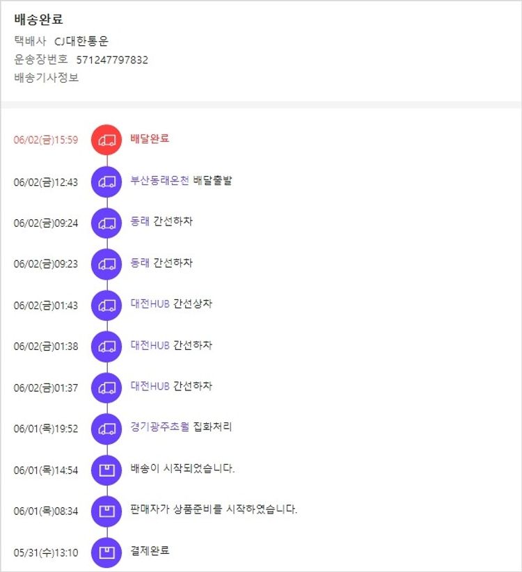 기부자님이 사용한 기부포인트 60,800원, 물품배송비 3,000원, 가격상승분 350원, 100원 미만 지원금 20원, 결제 수수료 13,764원, 기타 사업비는 행복나눔재단이 부담했습니다. (기부후기 발송시점에 최종 업데이트 됩니다.) 주문 건 중 품절 건 발생하여 2023. 05. 31. 재주문하였습니다. 실제 쇼핑몰에서 확인되는 배송현황을 캡처한 내용입니다. 실시간 자료와는 차이가 있을 수 있습니다.