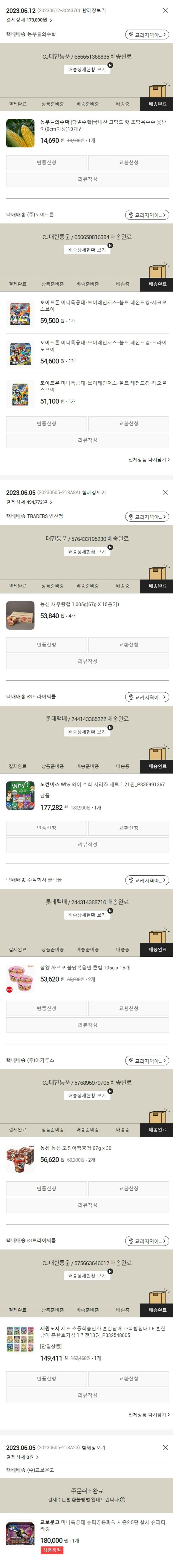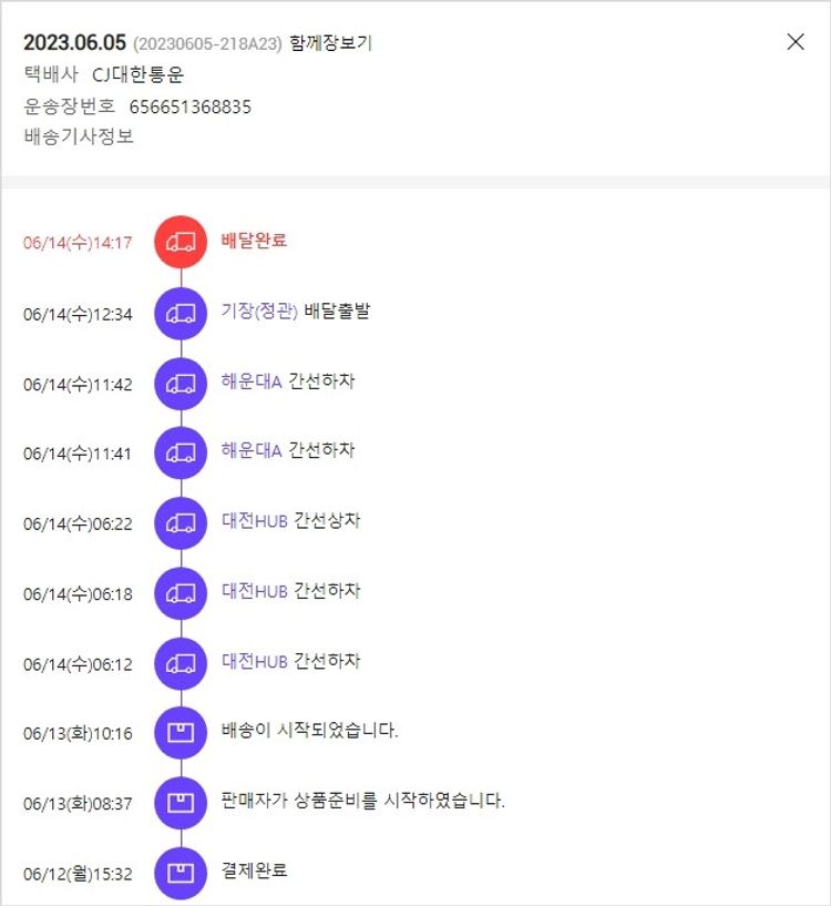 물품배송비 4,000원, 가격상승분 1,800원, 100원 미만 지원금 63원, 결제 수수료 12,507원, 기타 사업비는 행복나눔재단이 부담했습니다. (기부후기 발송시점에 최종 업데이트 됩니다.) 주문 건 중 품절 건 발생하여 2023. 06. 12. 재주문하였습니다. 실제 쇼핑몰에서 확인되는 배송현황을 캡처한 내용입니다. 실시간 자료와는 차이가 있을 수 있습니다.