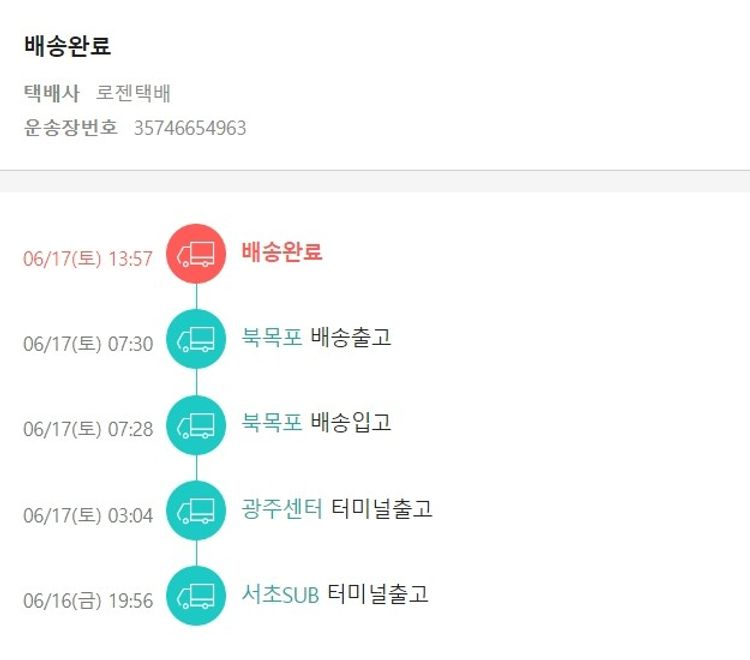 기부자님이 사용한 기부포인트 3,200원, 물품배송비 6,400원, 가격상승분 3,956원, 100원 미만 지원금 79원, 결제 수수료 14,350원, 기타 사업비는 행복나눔재단이 부담했습니다. (기부후기 발송시점에 최종 업데이트 됩니다.) 품절 건 발생하여 2023. 06. 16. 재주문하였습니다. 실제 쇼핑몰에서 확인되는 배송현황을 캡처한 내용입니다. 실시간 자료와는 차이가 있을 수 있습니다.