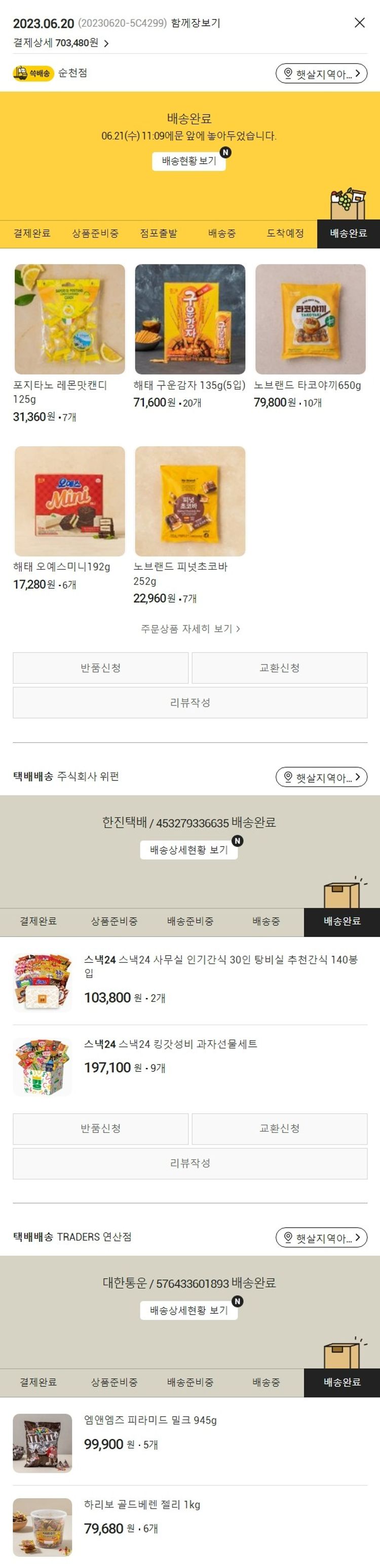 기부자님이 사용한 기부포인트 13,600원, 100원 미만 지원금 80원, 결제 수수료 17,873원, 기타 사업비는 행복나눔재단이 부담했습니다. (기부후기 발송시점에 최종 업데이트 됩니다.) 실제 쇼핑몰에서 확인되는 배송현황을 캡처한 내용입니다. 실시간 자료와는 차이가 있을 수 있습니다.