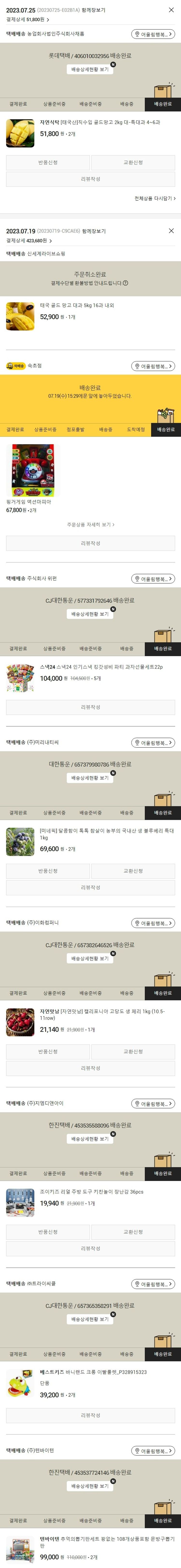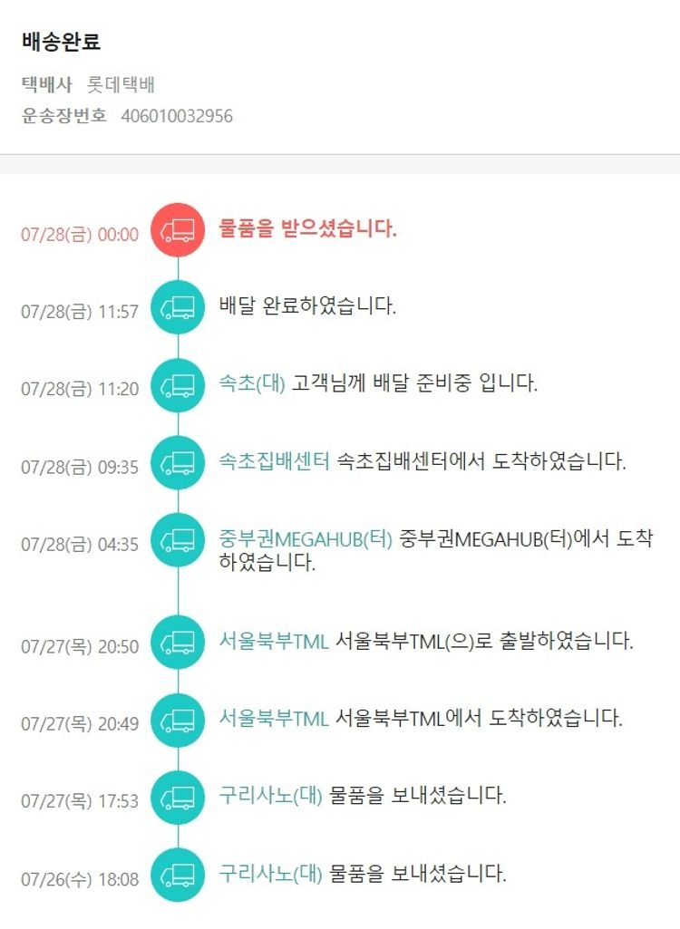 기부자님이 사용한 기부포인트 79,950원, 물품배송비 3,000원, 가격상승분 1,031원, 100원 미만 지원금 49원, 결제 수수료 8,925원, 기타 사업비는 행복나눔재단이 부담했습니다. (기부후기 발송시점에 최종 업데이트 됩니다.) 주문 건 중 입고 미정 상품이 있어 2023. 07. 25. 재주문하였습니다. 실제 쇼핑몰에서 확인되는 배송현황을 캡처한 내용입니다. 실시간 자료와는 차이가 있을 수 있습니다.