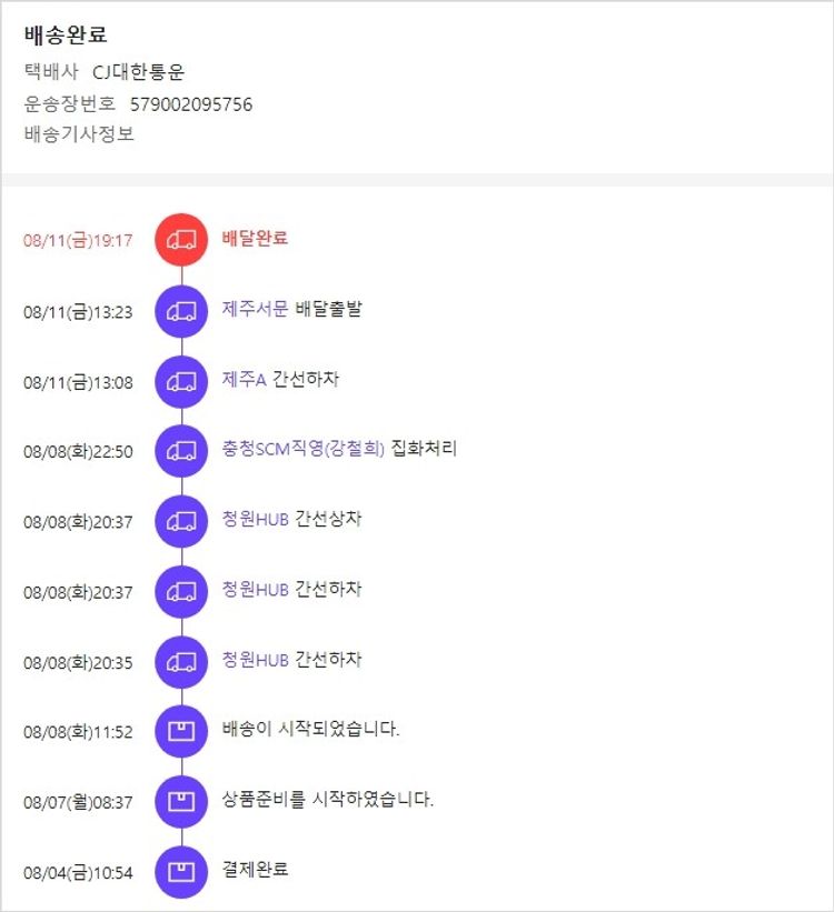기부자님이 사용한 기부포인트 4,000원, 물품배송비 15,000원, 가격상승분 2,888원, 100원 미만 지원금 84원, 결제 수수료 19,305원, 기타 사업비는 행복나눔재단이 부담했습니다. (기부후기 발송시점에 최종 업데이트 됩니다.) 주문 건 중 품절 건 발생하여 2023. 08. 07. 재주문했습니다. 실제 쇼핑몰에서 확인되는 배송현황을 캡처한 내용입니다. 실시간 자료와는 차이가 있을 수 있습니다.