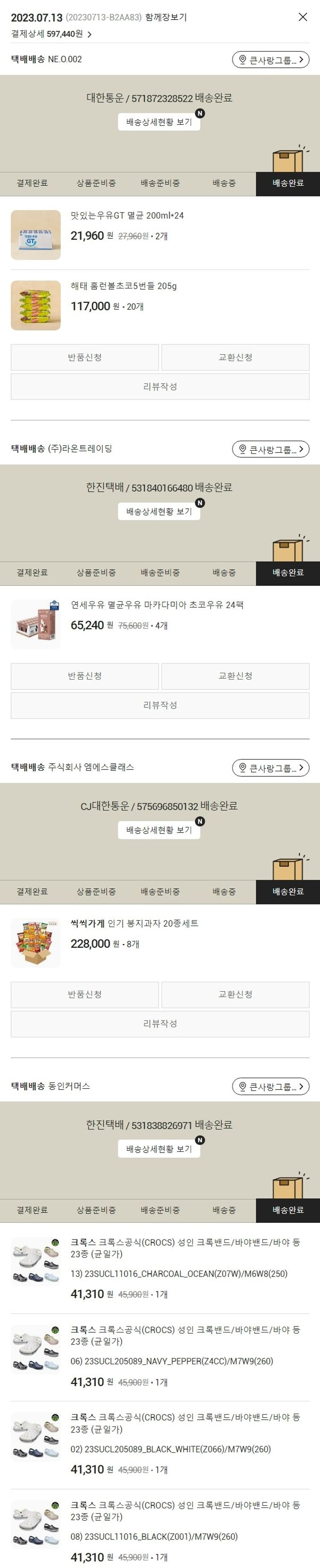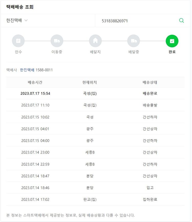 가격상승분 2,536원, 100원 미만 지원금 4원, 결제 수수료 20,940원, 기타 사업비는 행복나눔재단이 부담했습니다. (기부후기 발송시점에 최종 업데이트 됩니다.) 실제 쇼핑몰에서 확인되는 배송현황을 캡처한 내용입니다. 실시간 자료와는 차이가 있을 수 있습니다.