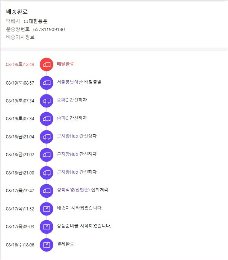 기부자님이 사용한 기부포인트 102,200원, 가격상승분 610원, 100원 미만 지원금 40원, 결제 수수료 20,319원, 기타 사업비는 행복나눔재단이 부담했습니다. (기부후기 발송시점에 최종 업데이트 됩니다.) 실제 쇼핑몰에서 확인되는 배송현황을 캡처한 내용입니다. 실시간 자료와는 차이가 있을 수 있습니다.