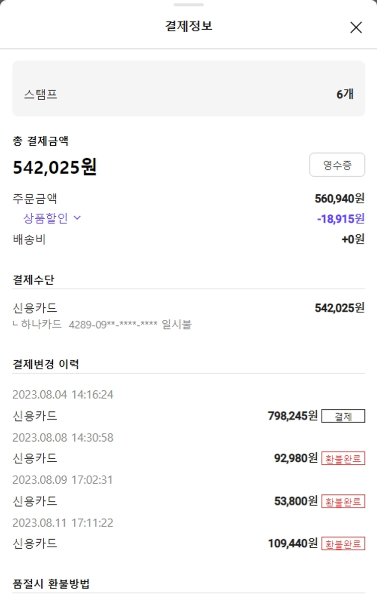 주문 건 중 품절 건 발생하여 2023. 08. 17. 재주문하였습니다.